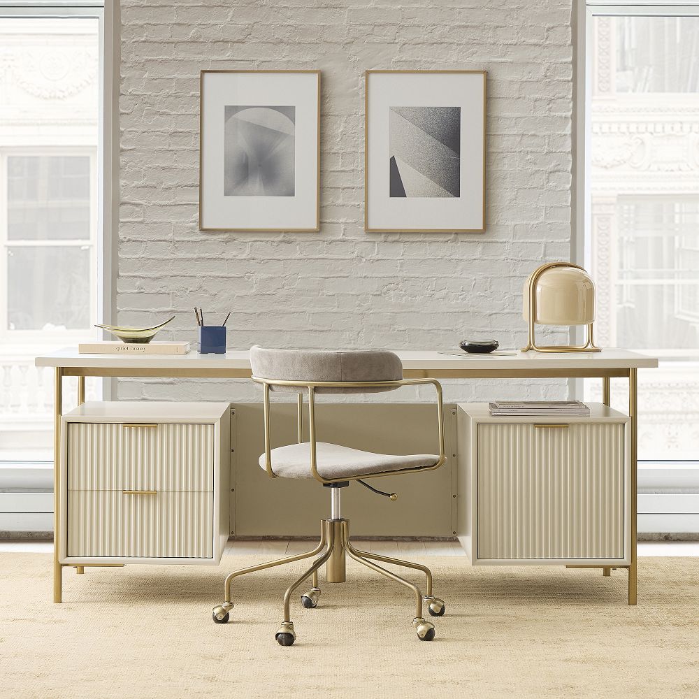 Discover the Table Lamp, where a symmetrical exposed metal frame meets a playful dome shade for a distinct vintage-inspired look. Crafted in a warm Champagne Bronze finish, this contract-grade lamp emits a soft ambient glow, built to last as a charming centerpiece for your nightstand or side table. Its timeless design seamlessly blends with any decor style.