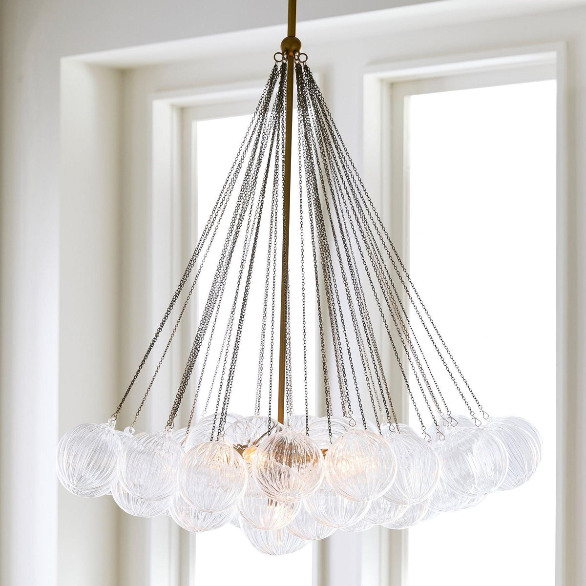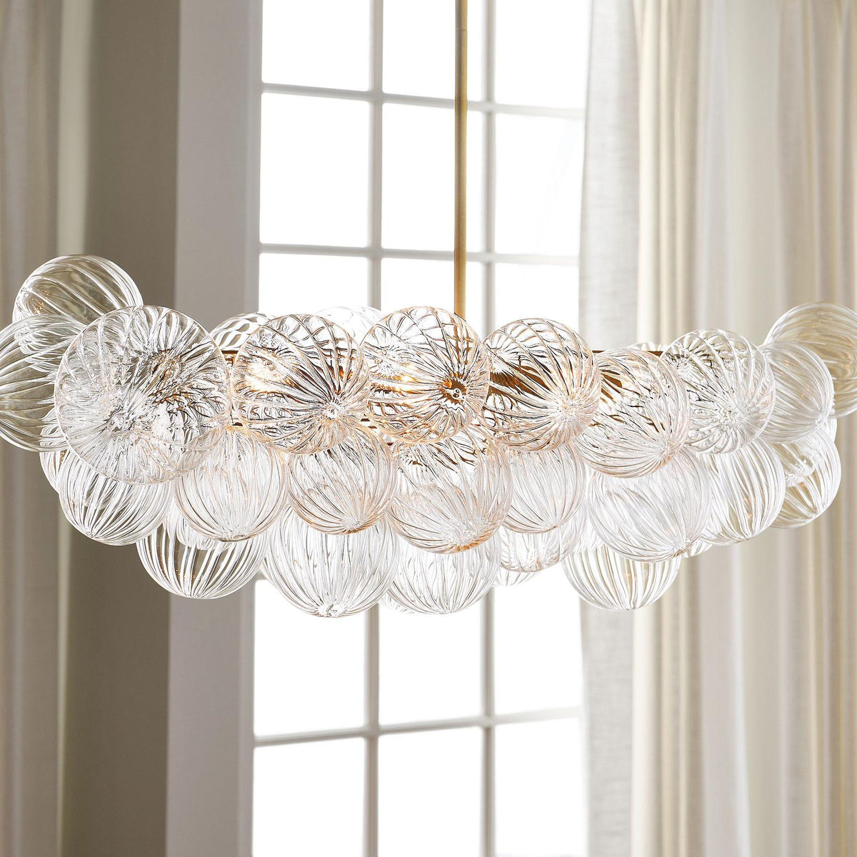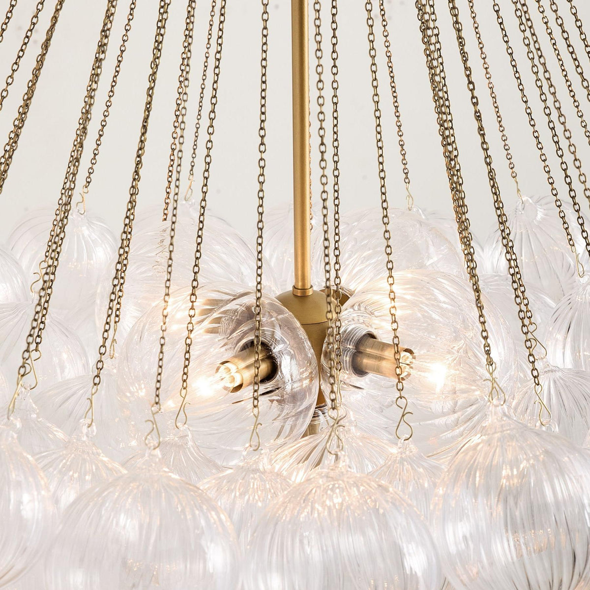 Bravira Glass Bubbled Chandelier - Vintage Brass Oval Glass Lighting