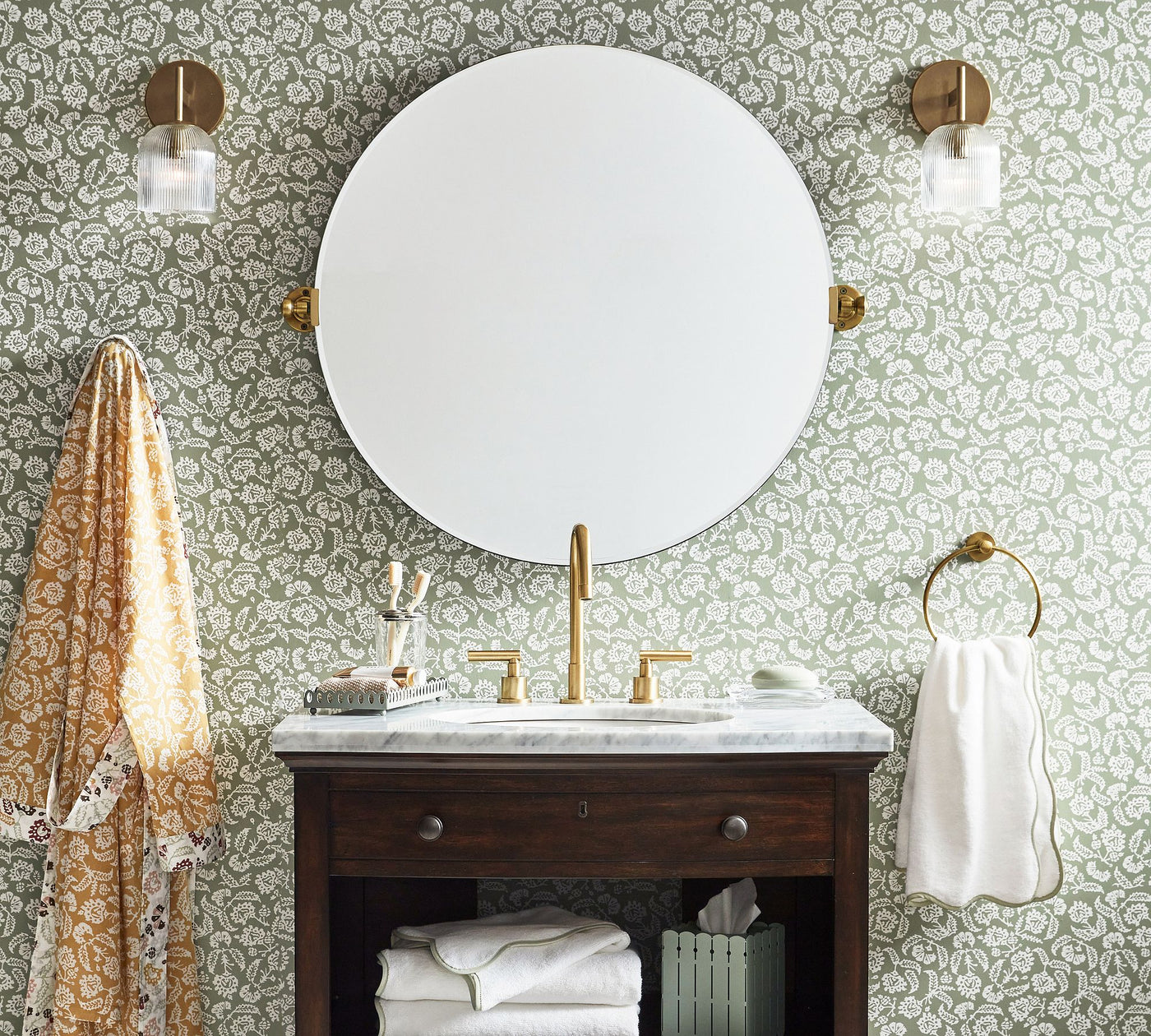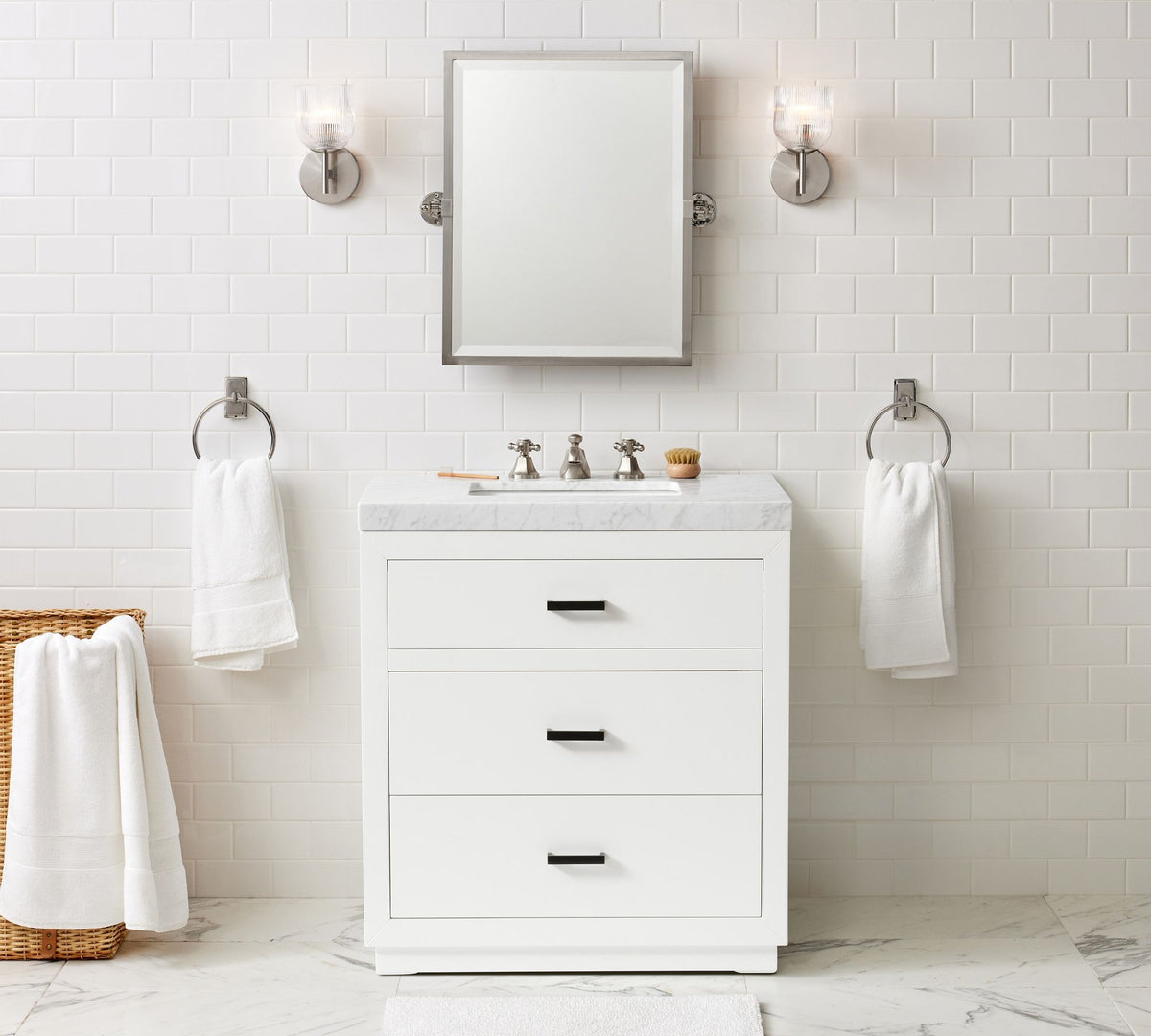 - Crafted of iron and finished in choice of Antique Bronze, Satin Nickel, or Tumbled Brass.