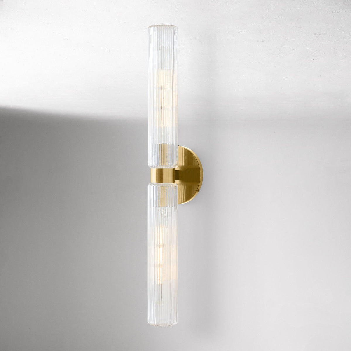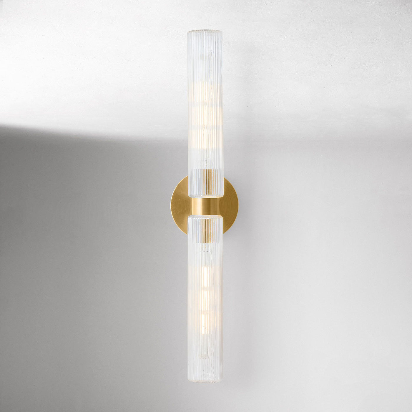 Elevate your home with this fluted glass wall light, styled as a 16" double short indoor outdoor sconce. Ideal as a bedroom wall light, hallway wall light, or patio fixture, it blends contemporary form with soft illumination. A durable, versatile wall light that suits any décor.
