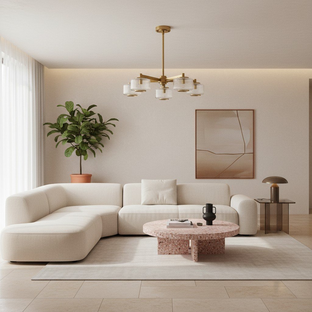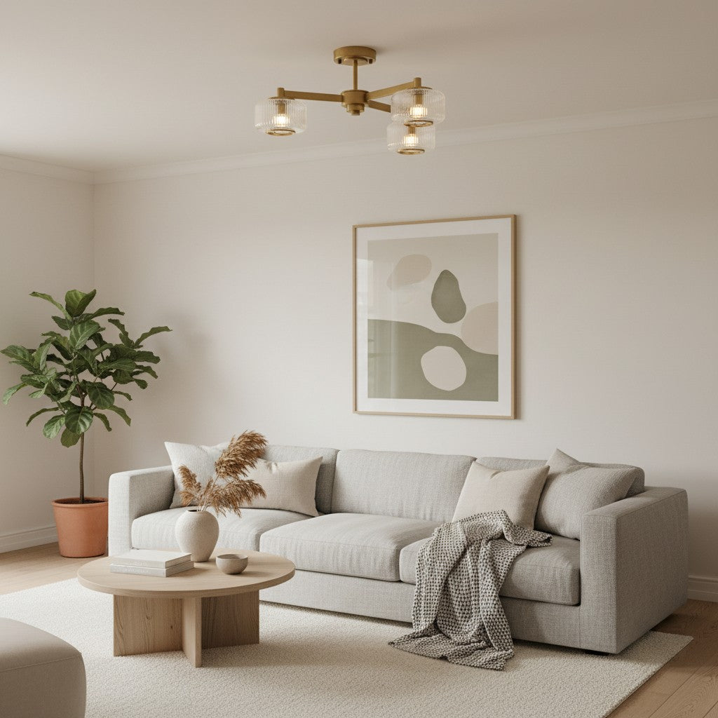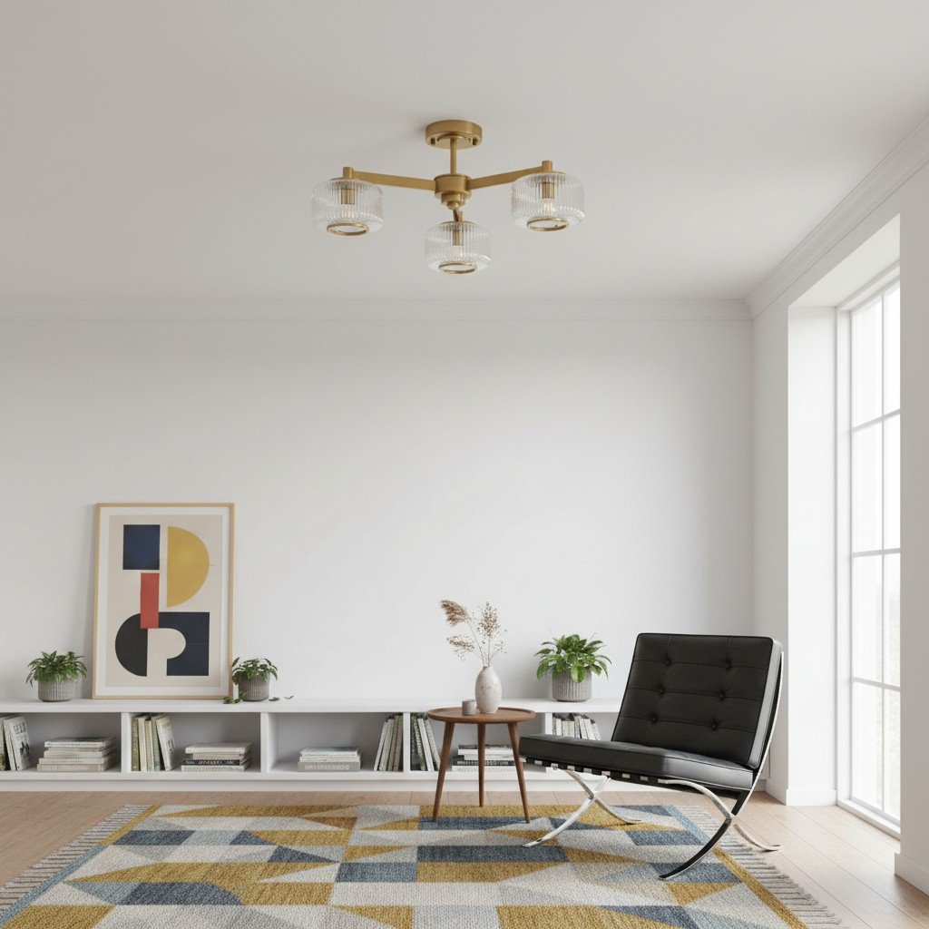 Elevate your home with our exquisite ceiling light collection, where vintage industrial style meets modern elegance. Featuring multiple arms and stunning ribbed glass shades, this fixture casts a warm, beautifully diffused glow. Its sophisticated metal frame, available in various finishes, adds a timeless touch.