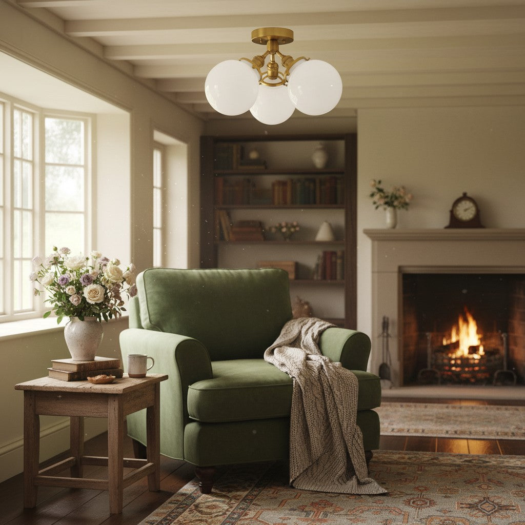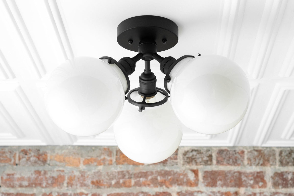 Glorica Glass Globe Light - Mid Century Semi Flush Ceiling Lamp