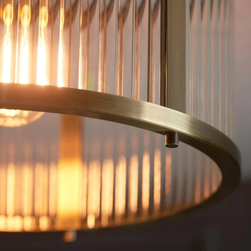 - Soft lighting: The ribbed glass lampshade diffuses the light evenly, creating a warm and inviting glow in the room.
