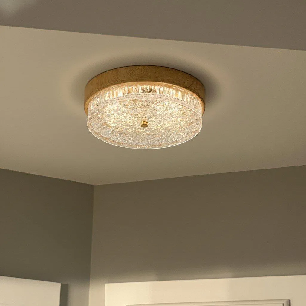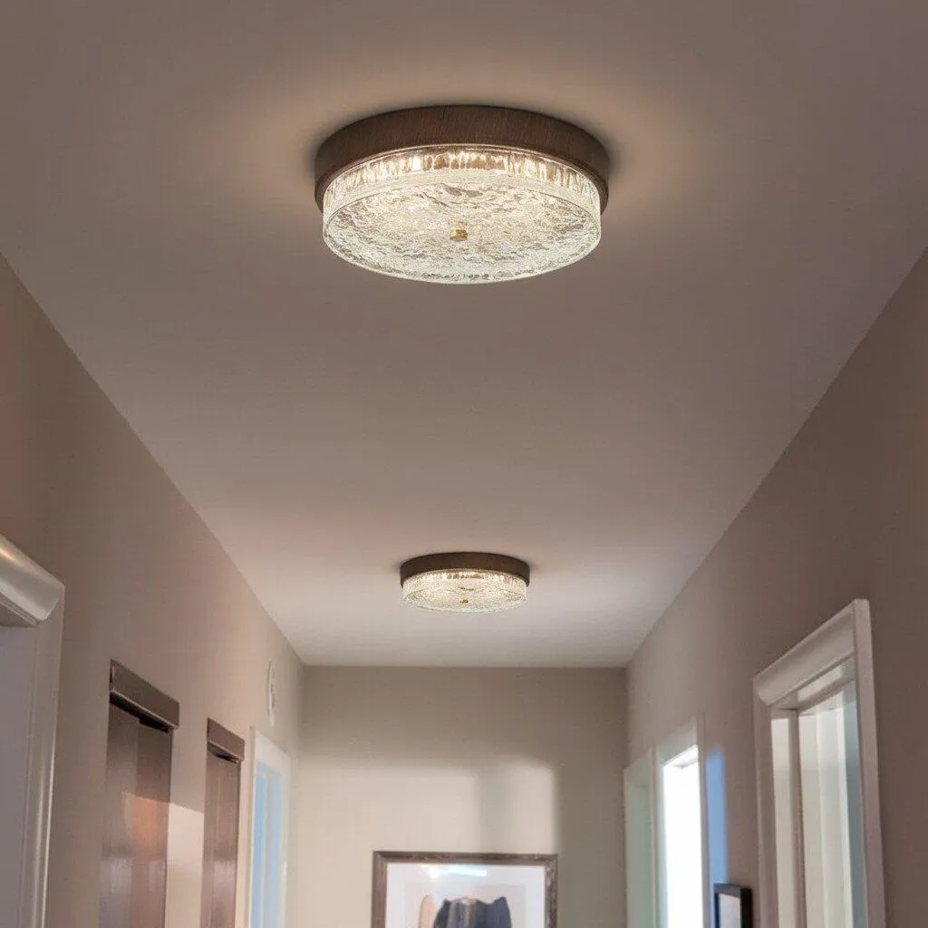 Enhance your interior with the elegant Ripples Flush Mount Light. Designed with a richly textured wooden body, this fixture brings warmth and personality to your space. Its distinctive ripple-inspired glass shade, echoing the gentle waves of a pond, diffuses light softly to create a calm and welcoming atmosphere.
