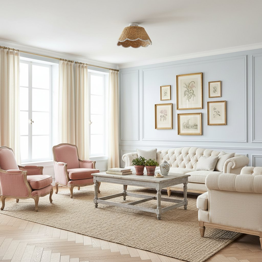 Ruvest Farmhouse Flush Mount Ceiling Light - Scallop Rattan for Warm Interiors