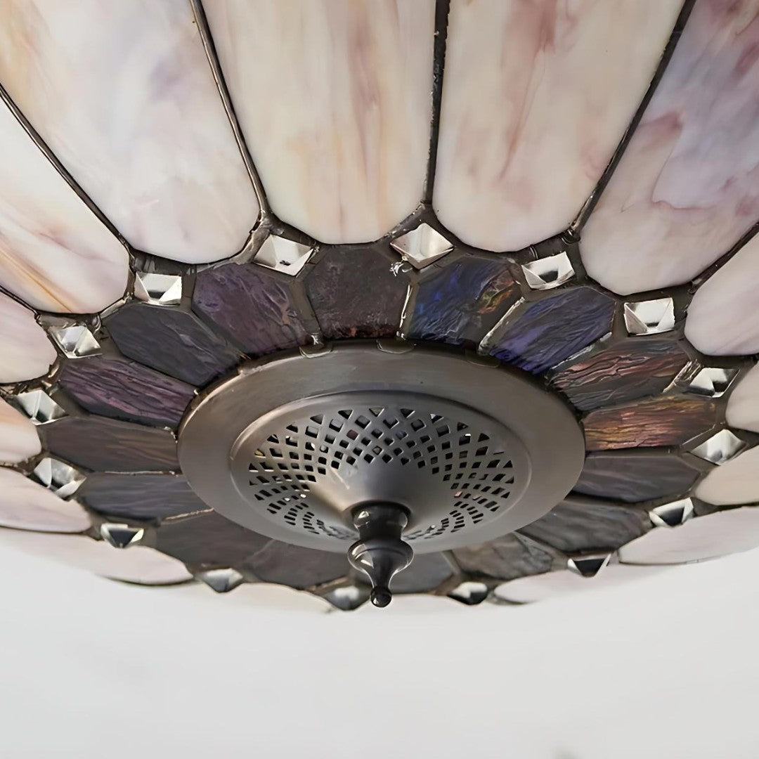 TF Brooklyn Tiffany Glass Flush Mount Ceiling Light - Art Deco Design for Hallway or Living Room