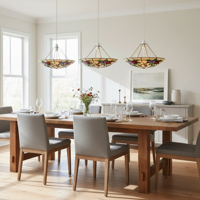 Transform your space with pendant lamps, featuring intricate butterfly and dragonfly stained glass designs. Handcrafted with vibrant, multi-colored glass and classic motifs, these elegant hanging lamps add artistic charm and warm ambient lighting to living rooms, bedrooms, dining areas, or hallways.