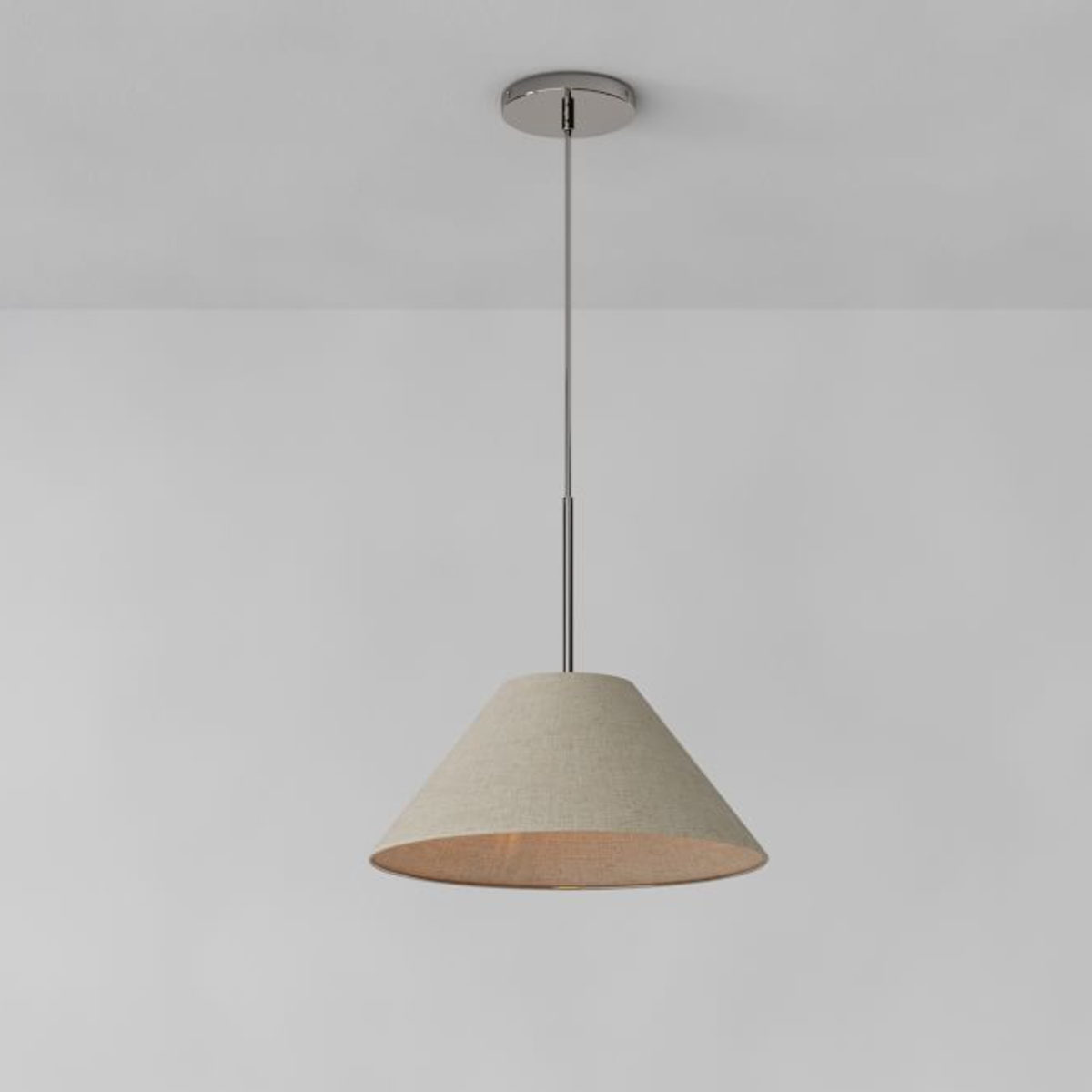 With a soft sculptural fabric shade and minimalist cone design, this pendant light adds warmth and elegance to modern interiors. Its height-adjustable structure fits various ceiling heights, while versatile finishes complement any decor.