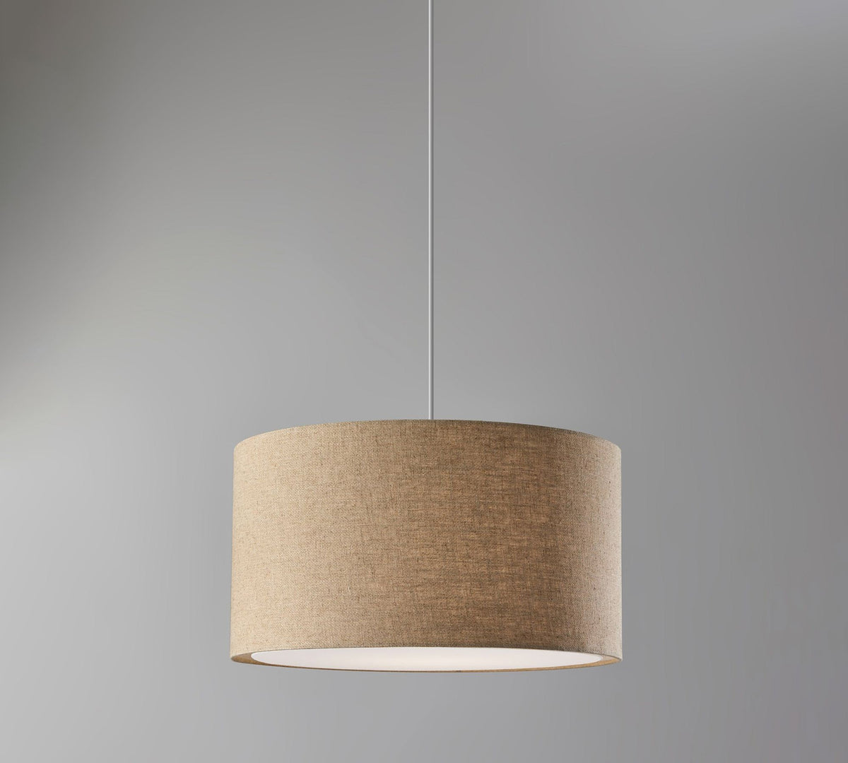 The Fabric Drum Shade Pendant Light with a linen design offers a refined and timeless style. This hanging light creates soft, ambient illumination perfect for dining rooms, kitchens, and living areas. Its fabric drum shade complements modern, transitional, and classic interiors effortlessly.