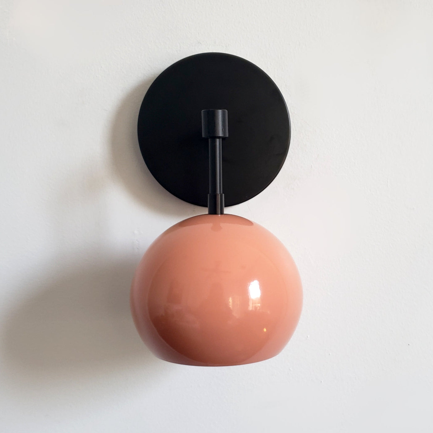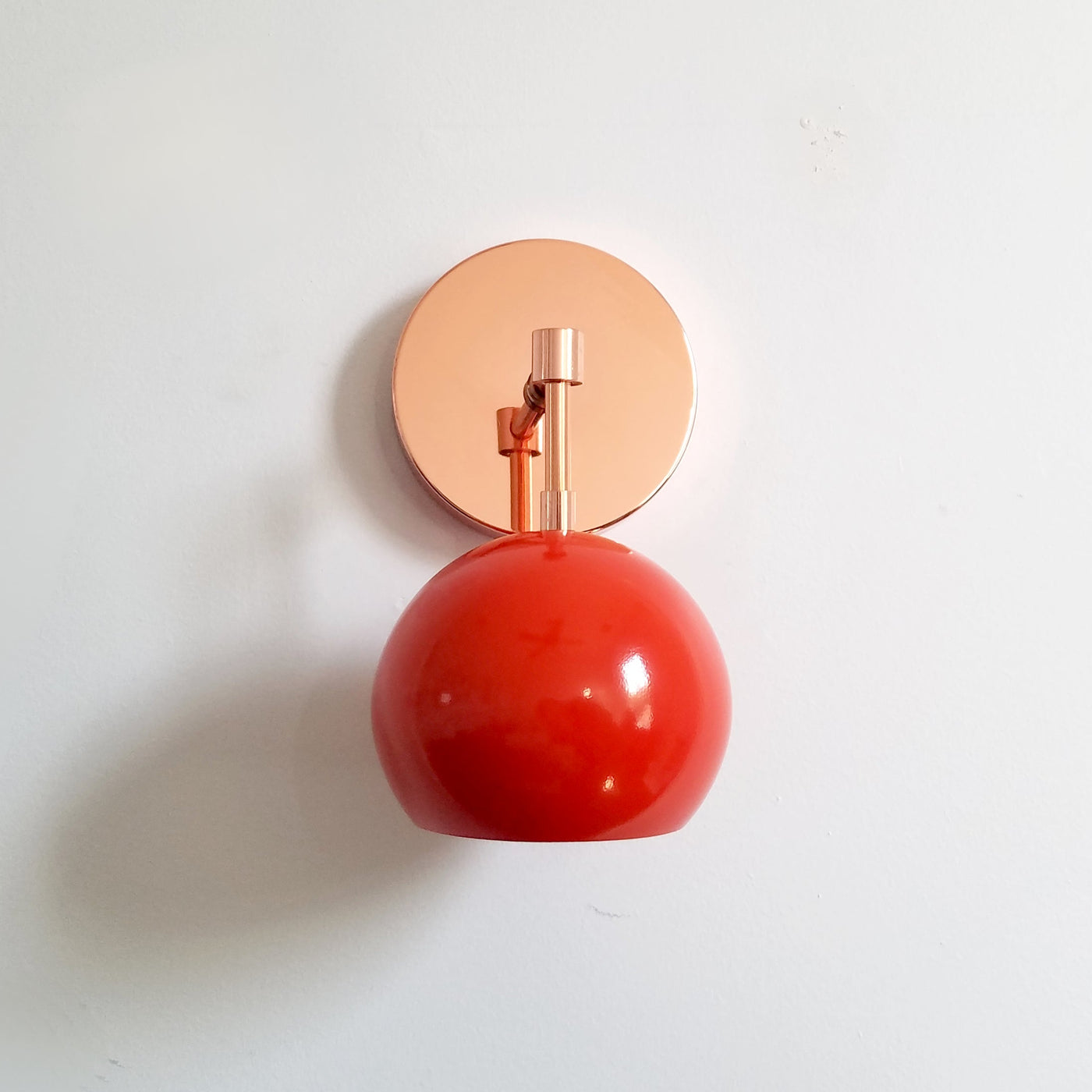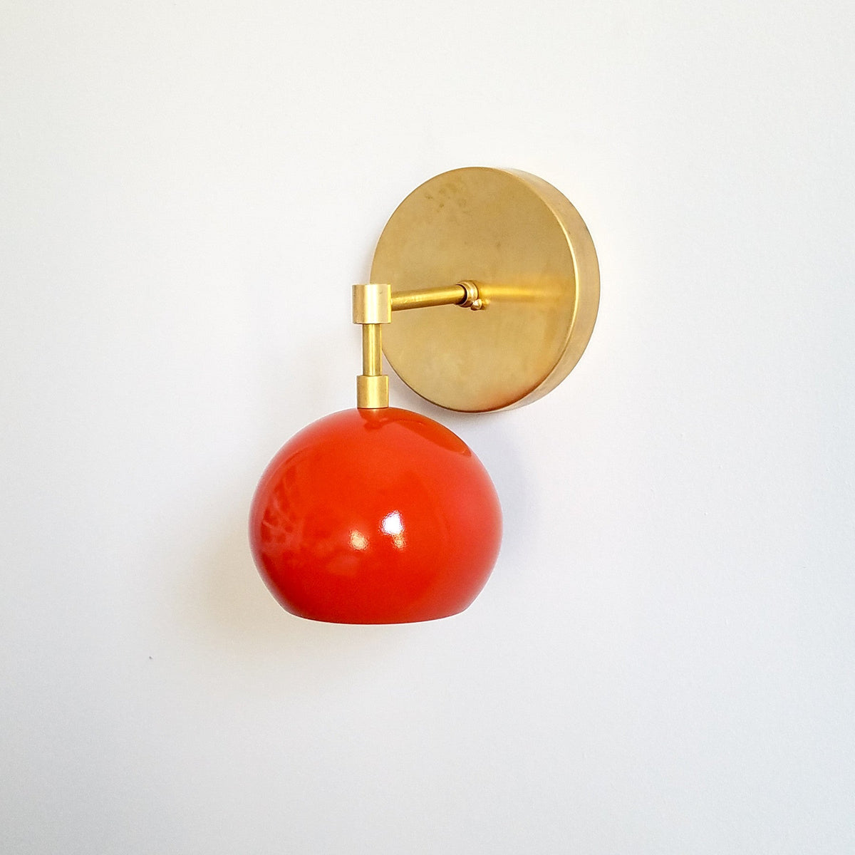Mid Century Flame Orange Globe Wall Sconce - Modern Brass Or Chrome Light