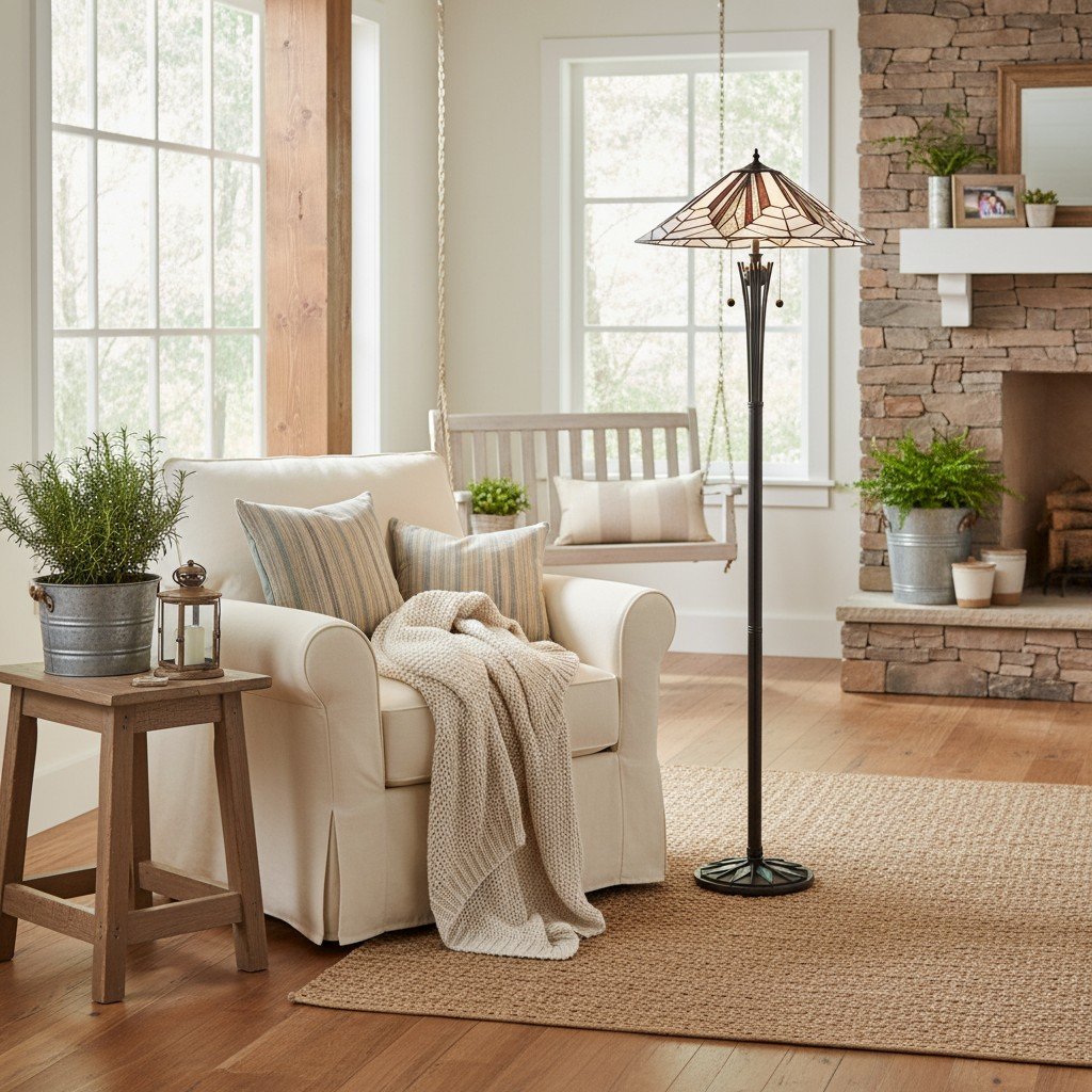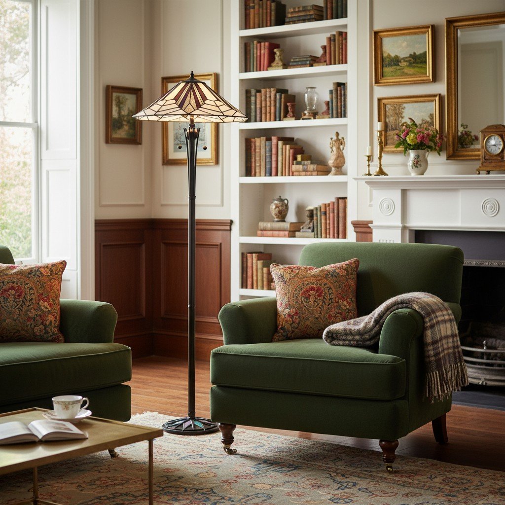 TF Astoria Art Deco Stained Glass Floor Lamp – Geometric Design Standing Light for Living Room