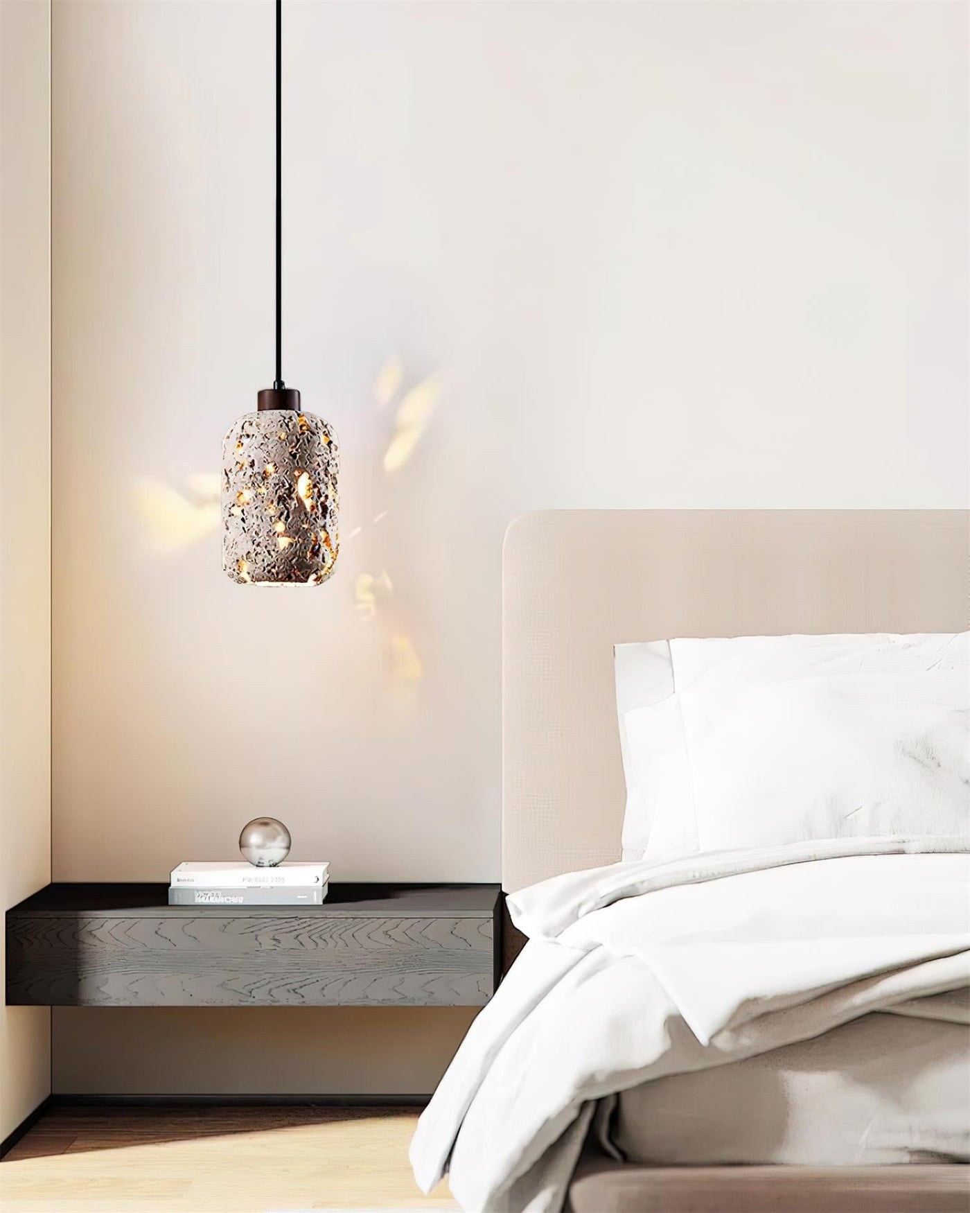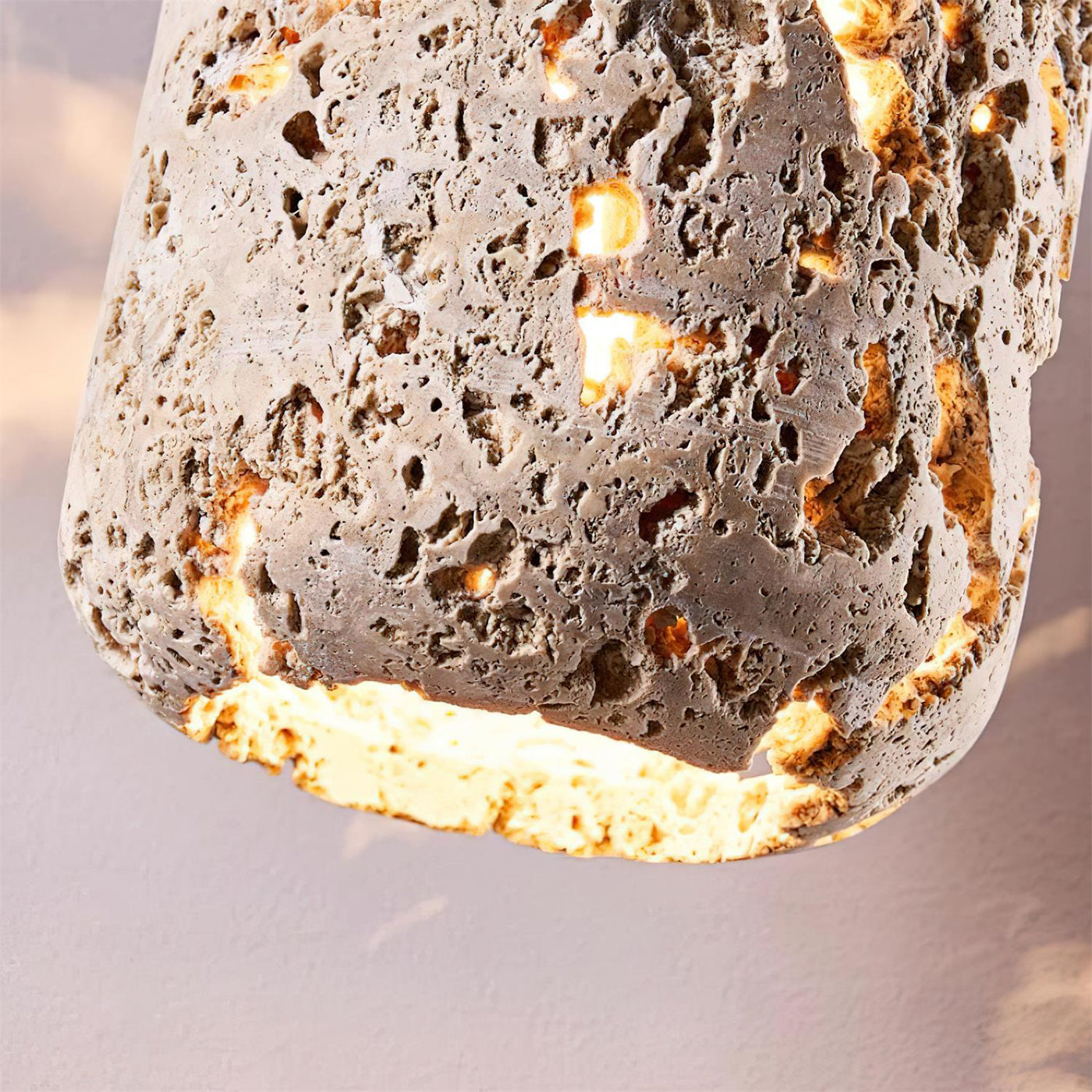 The Crone Pendant Lamp is a striking blend of natural elegance and modern design. Its textured travertine base creates a unique visual effect, allowing light to filter through and cast captivating patterns on the surrounding space. The lamp features a sleek metal top that complements its rustic charm, making it a perfect addition to kitchens, dining rooms, or living areas. With its warm glow and sophisticated look, the Crone Pendant Lamp brings both functionality and style to your home.