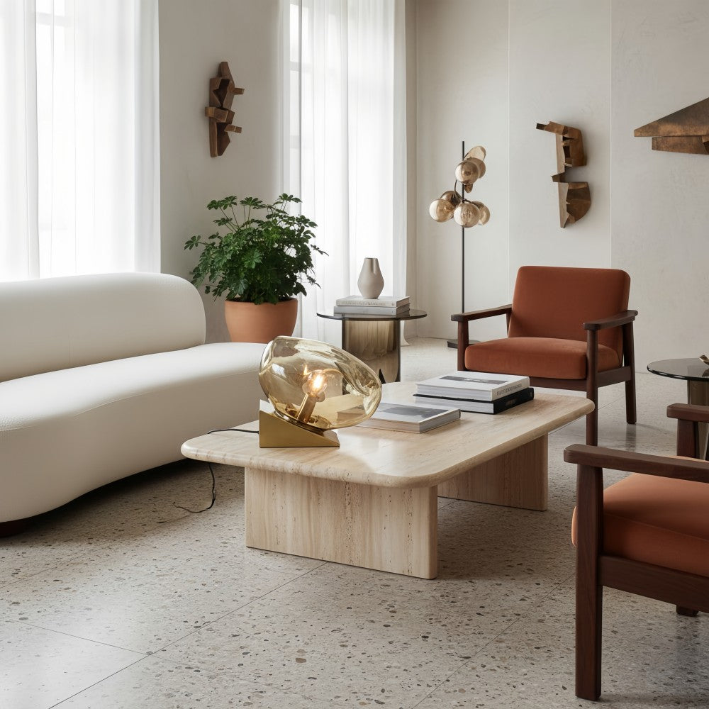 The Glissora Glass Table Lamp features a gently curved glass body that radiates soft, ambient light. Crafted from high-quality glass, its smooth, rounded design adds sculptural elegance to any space. This compact decorative lamp is ideal for cozy corners—bringing warm, inviting illumination with refined style.