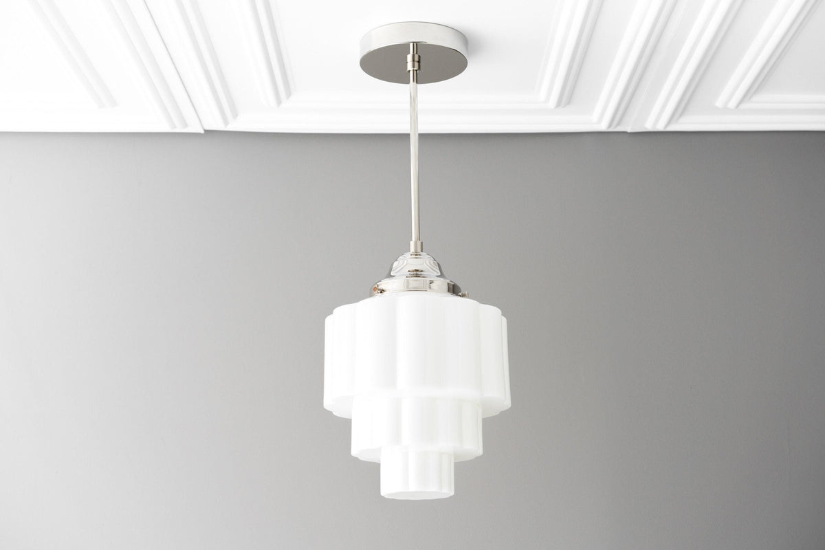 Bring timeless elegance to your home with this frosted glass pendant light. Designed in a refined Art Deco style, it features a beautifully shaped opal glass globe and durable brass or black finish options. Perfect for kitchens, dining rooms, or living spaces that need sophisticated charm.
