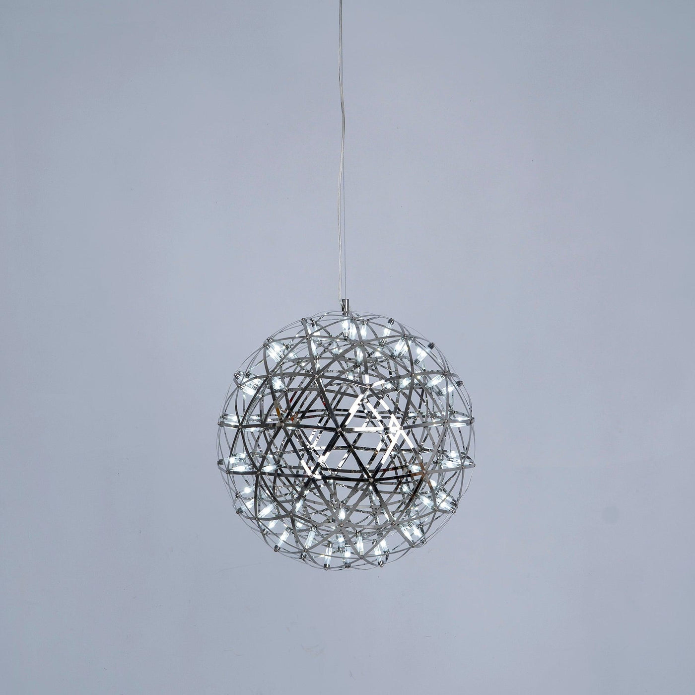 The Spark Ball Pendant Light is a perfect sphere of mathematical ingredients punctuated by tiny LED lights. It is especially detailed to spread warm white light in every direction and looking at the light feels like staring into the soft glow of a starry night.