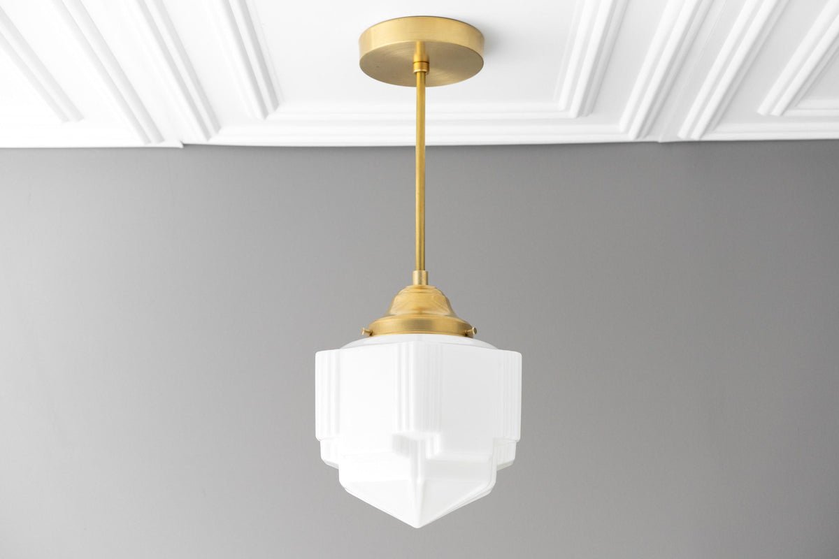 Geotower Glass Modern Pendant Light - Skyscraper Design - Brass or Black or Nickel Finish
