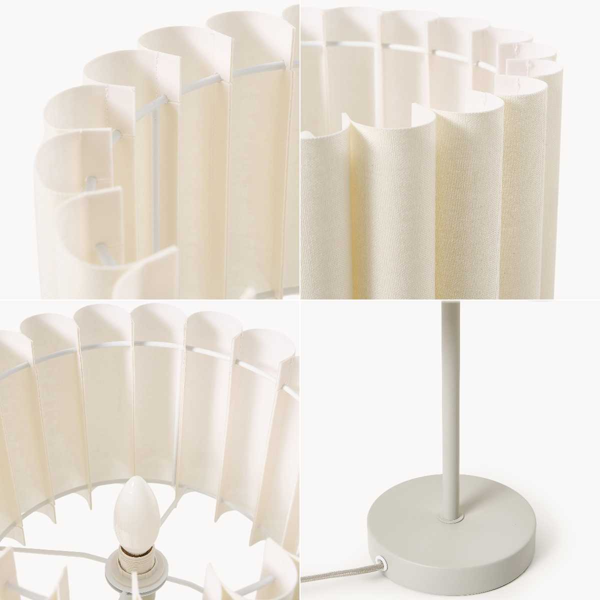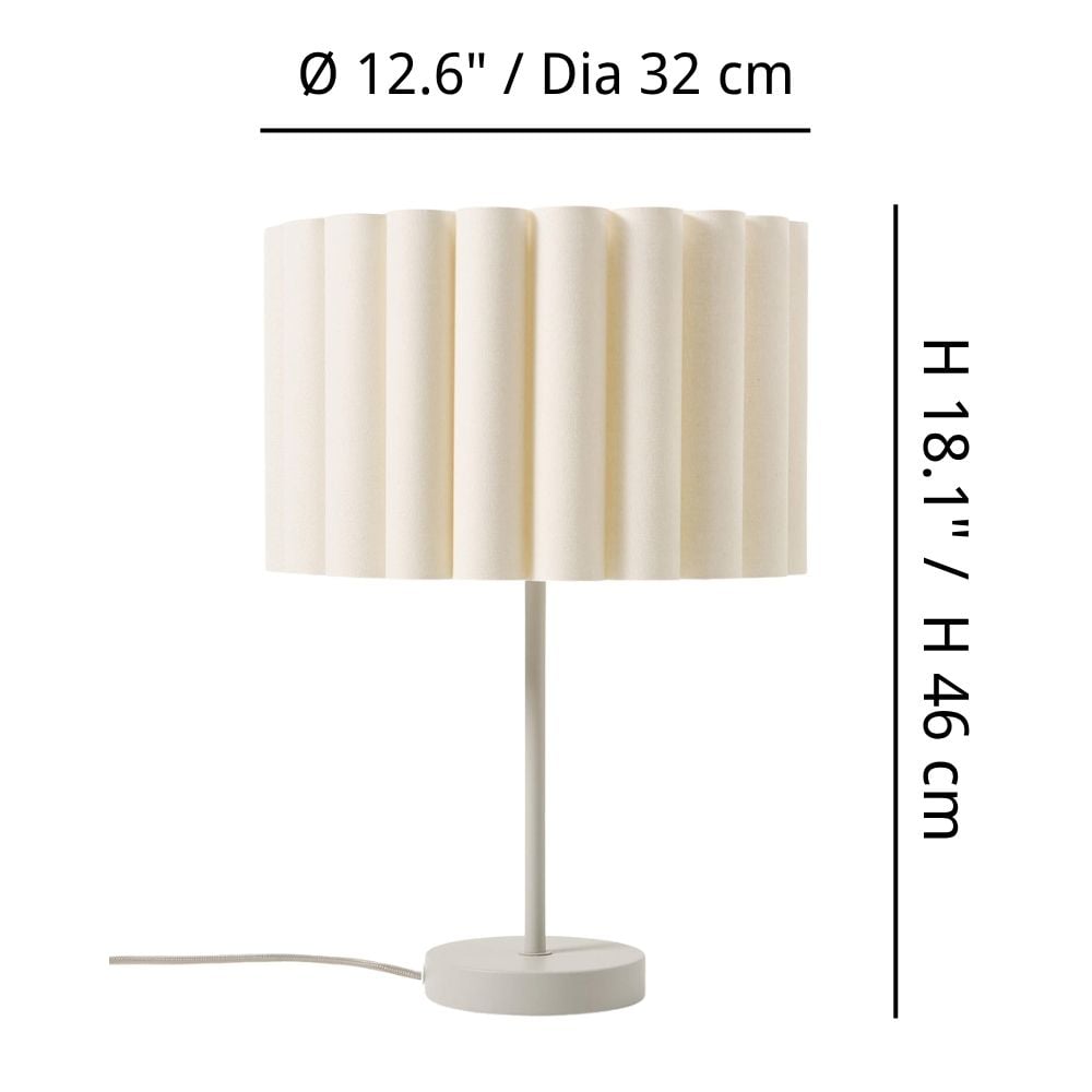 The Velura Table Lamp combines elegant design with practical functionality. Featuring a gathered linen shade in light beige that creates beautiful wall patterns when illuminated, this design lamp is perfect for bedside tables or office desks.