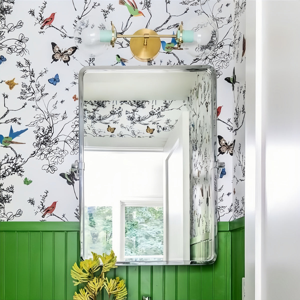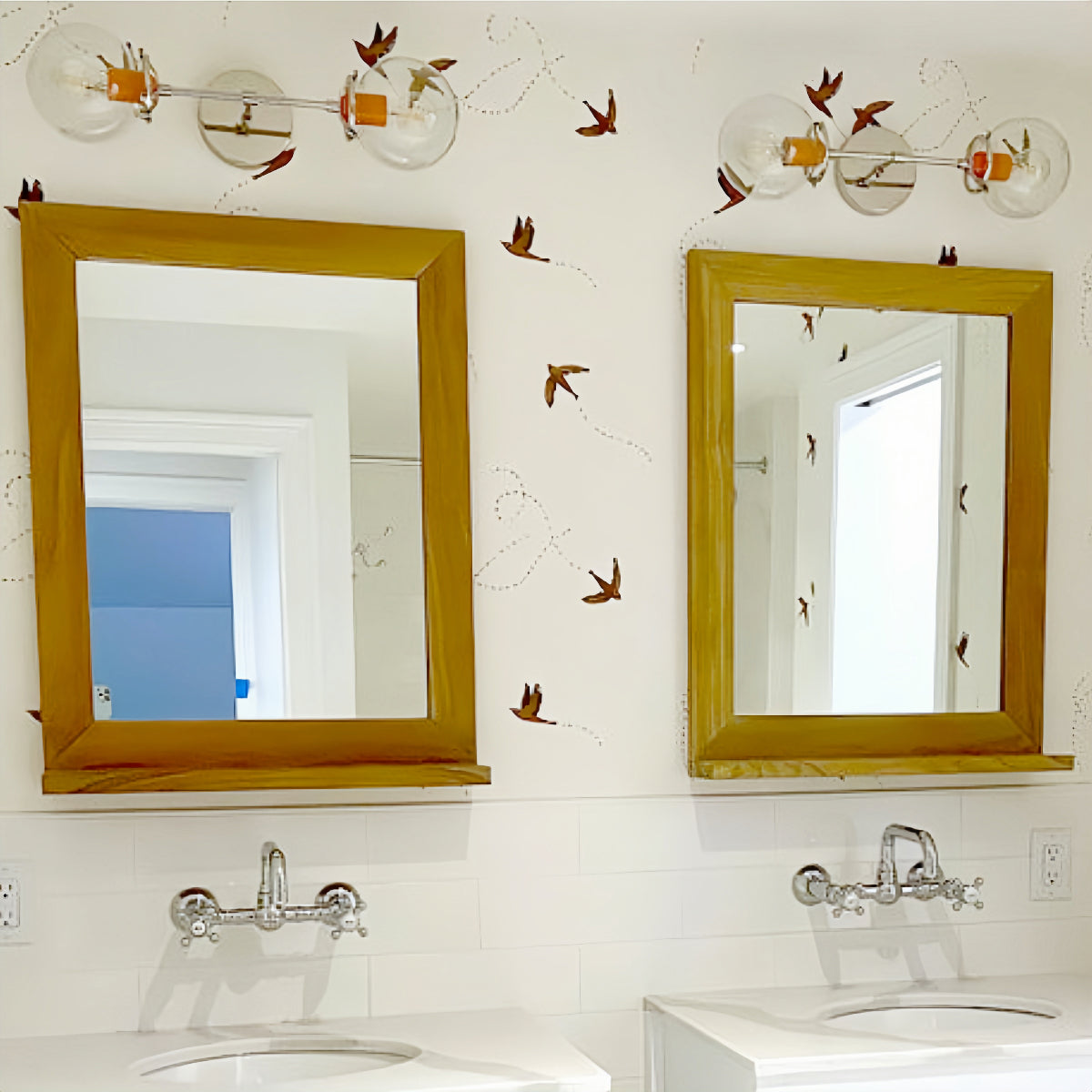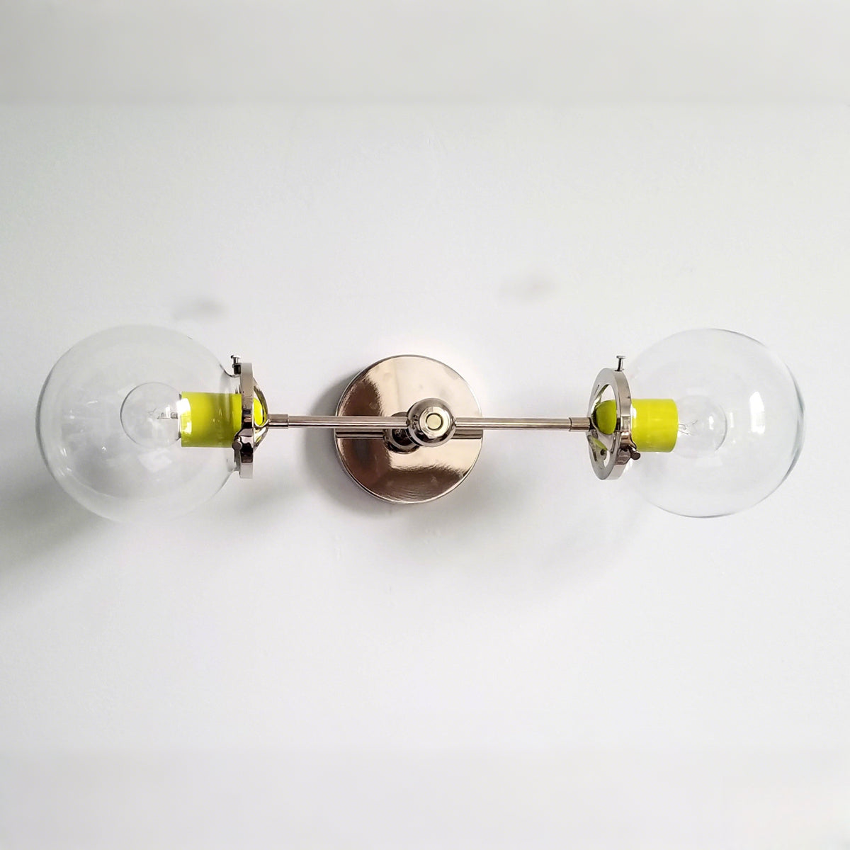 Elevate interior spaces with this double wall light fixture. Featuring raw brass or chrome finishes and adjustable downrod length, it’s ideal as bedroom wall lighting, hallway sconces, or decorative accent lighting. Vibrant color pops in wintergreen, chartreuse, and tangerine make it playful and unique.