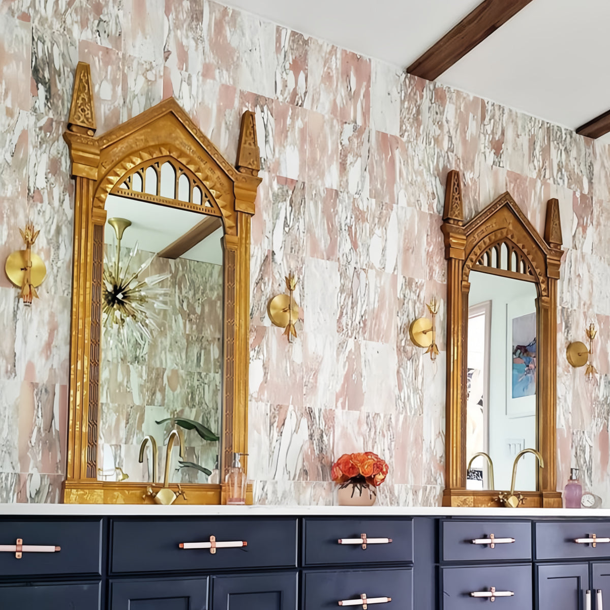 Romantic Polished Copper Wall Sconce - Modern Gilded Accent Light