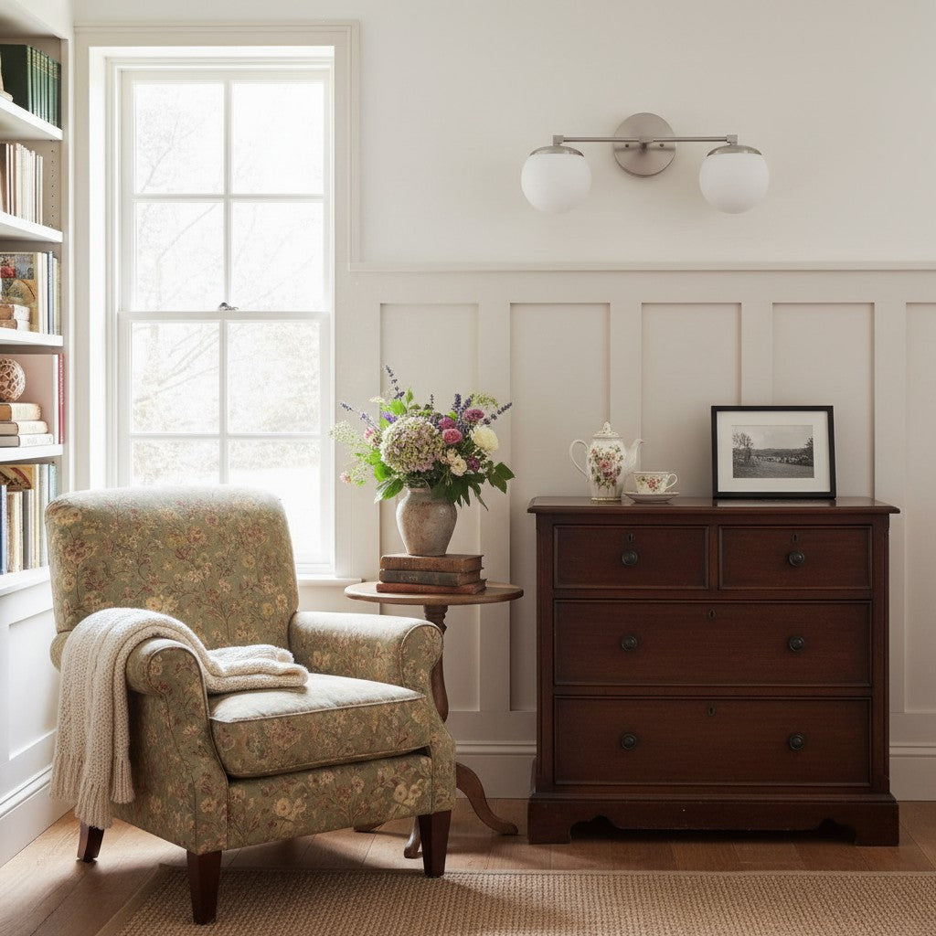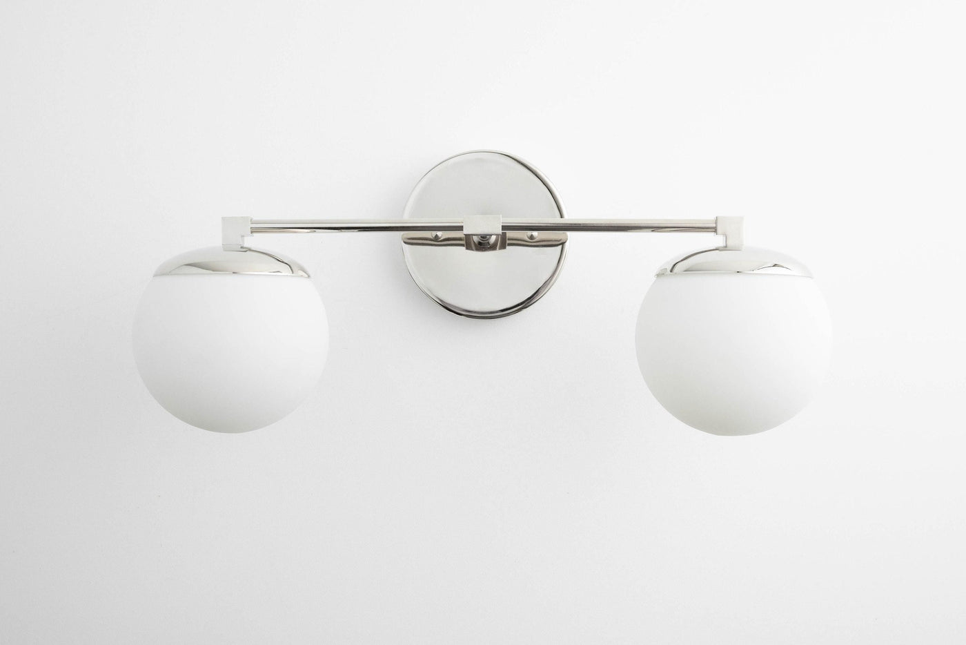 The Glorica Glass Vanity Light adds refined Art Deco style to any space. Featuring a satin opal globe and solid brass fixture, this versatile wall light can be mounted horizontally or vertically. Its sleek lines and warm finishes provide soft, ambient illumination for bathrooms, hallways, or bedrooms.