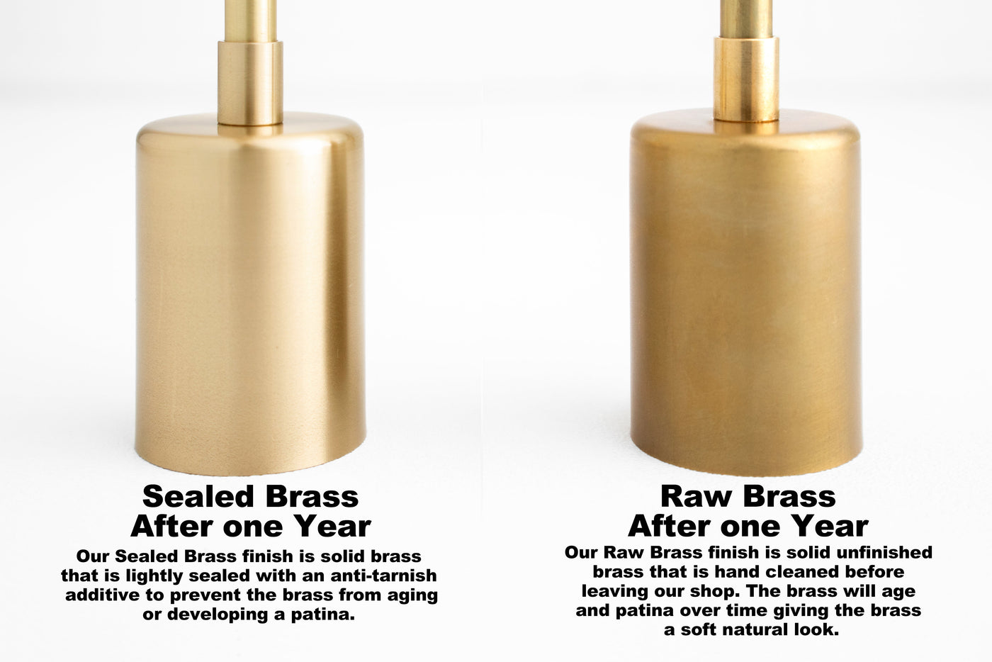 - Sealed Brass - Solid brass that is lightly sealed with an anti-tarnish additive to prevent the brass from aging or developing a patina.