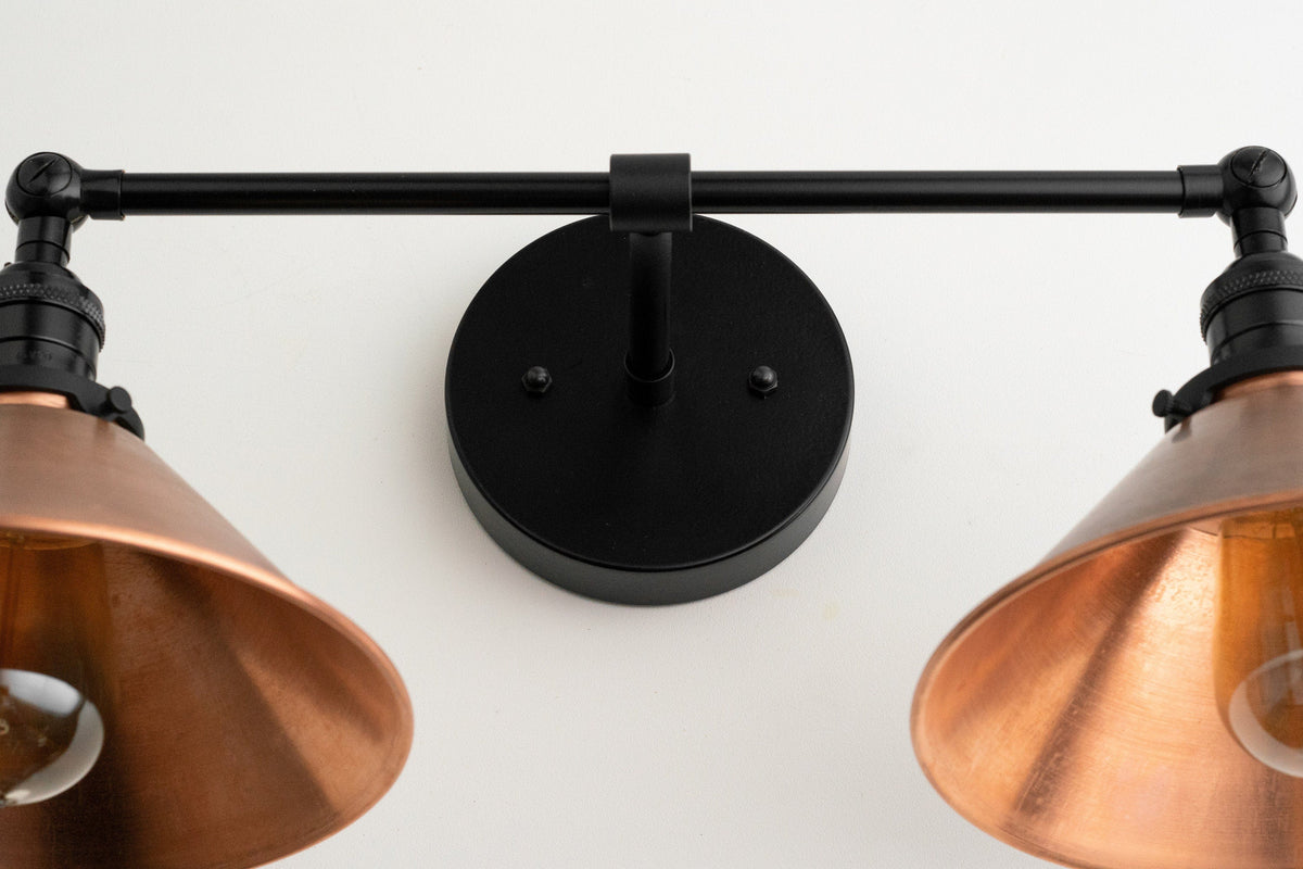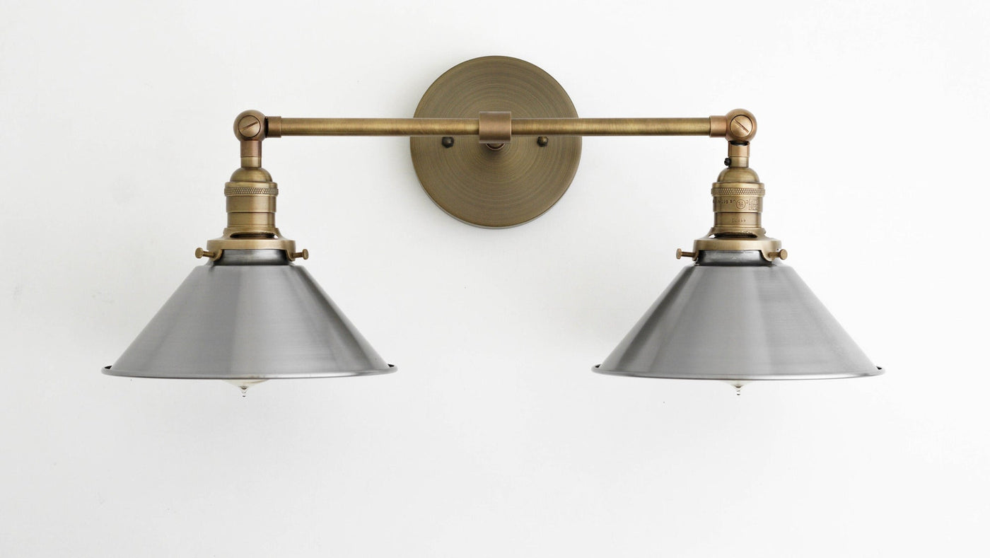 Conique Metal Two-Light Industrial Vanity Sconce – Wall Fixture for Bathroom & Hallway