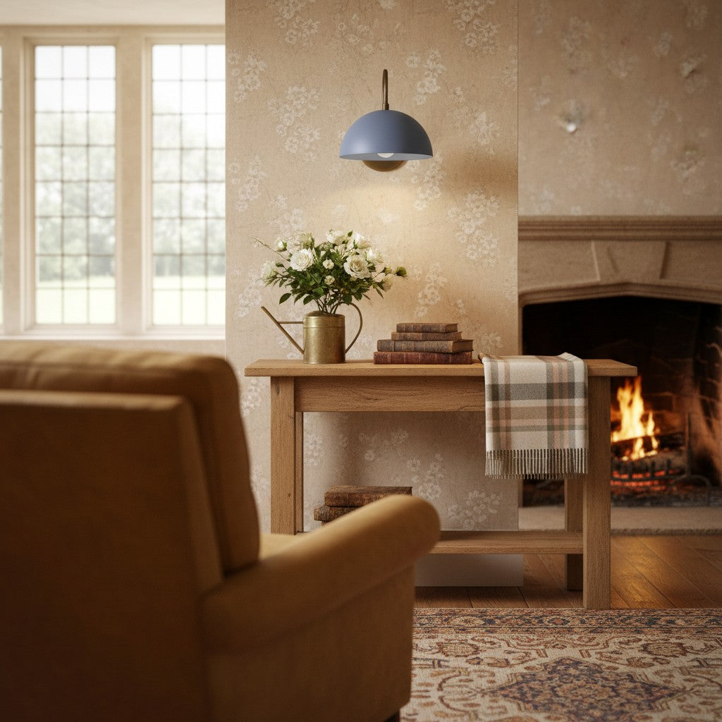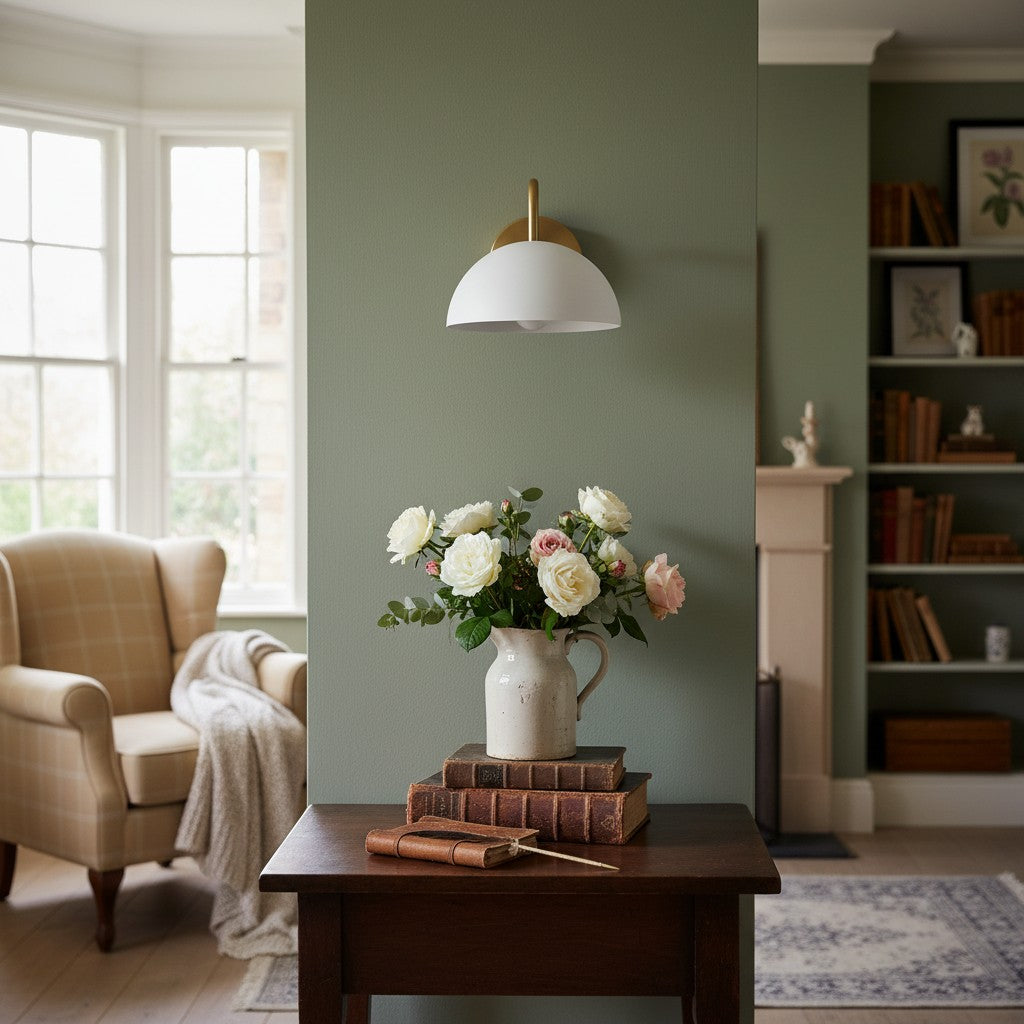 Bring understated elegance to your décor with this versatile wall sconce. The arched brass arm holds a hammered dome shade, casting a subtle, focused glow downward. Ideal for layering light in hallways, creating a cozy bedside ambiance, or adding depth to living spaces. A stylish mix of modern and vintage influences.