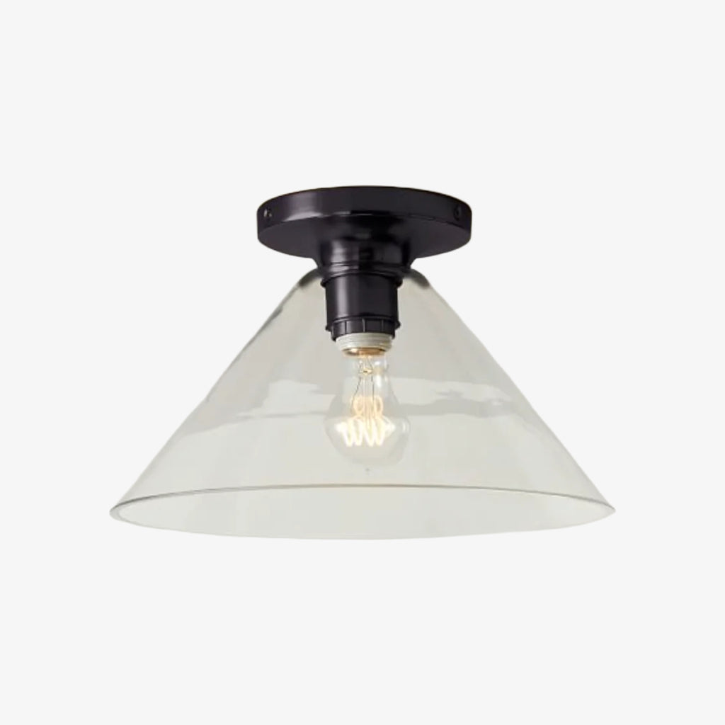 The Sculptural Cone Flush Mount offers a clean silhouette with a custom feel. Its cone-shaped glass shade creates a warm, glowing effect, perfect for living rooms, hallways, or dining spaces. Designed to blend seamlessly into both modern and classic interiors.